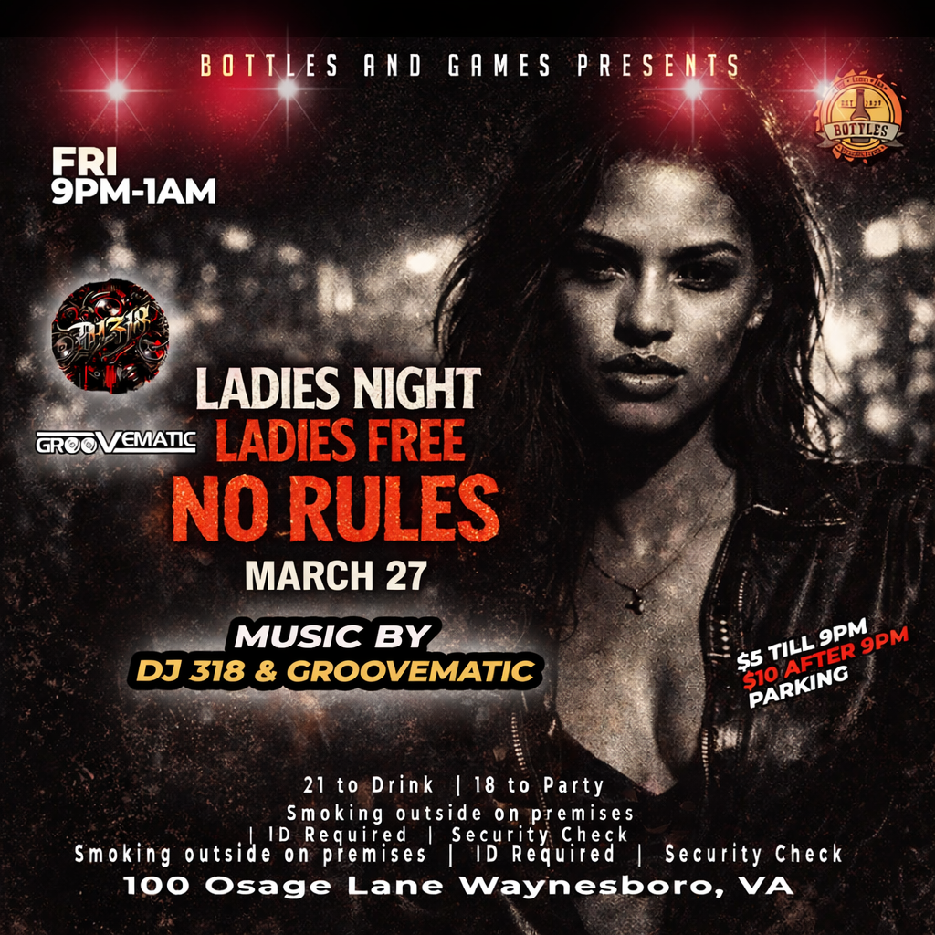 Bottles is family friendly until 9pm every night. Ages 18+ only after.