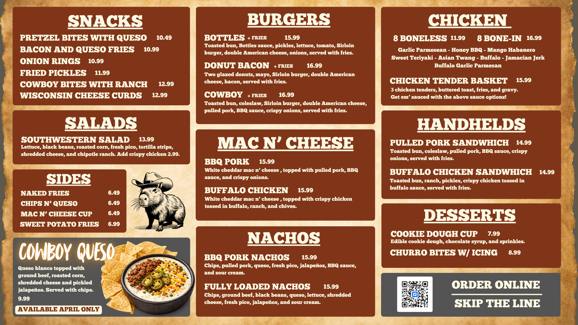 OUR MENU Place your order at our order station OR order online to skip the line or order curbside! ORDER NOW ORDER NOW